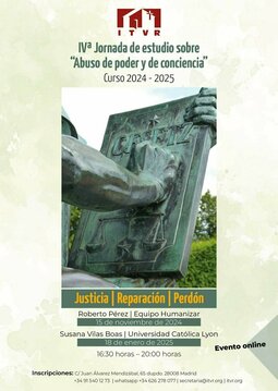 Fiel a su compromiso con la reflexión que ayude a desenmascarar, evitar y prevenir cualquier situación abusiva, el ITVR organiza en este curso 2024/2025 su «IV Jornada de Estudio sobre Abuso de poder y de conciencia». En los años anteriores hemos abordado la definición y la fenomenología del problema de los abusos, en esta 4ª edición nos centraremos en tres aspectos que ponen en primer plano la necesidad de priorizar el punto de vista de las víctimas. Estas deben ser tratadas con justicia, y es necesario buscar el modo de reparar el daño que se les ha hecho. Asimismo, mas allá del alcance jurídico -e incluso penal- de esta cuestión, desde el punto de vista cristiano, en la relación entre el víctima y victimario, no se puede descartar absolutamente el horizonte del perdón.