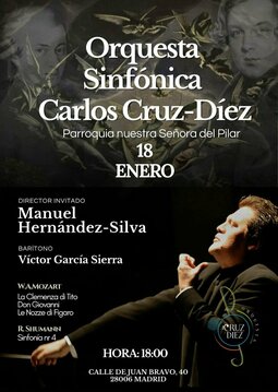 La orquesta Sinfónica Carlos Cruz-Diez, nos lleva del clasicismo al romanticismo, de la mano del maestro Manuel Hernández-Silva, con la obertura de La clemenza di Tito, Arias de opera de Don Giovanni, Le Nozze di Fígaro, todas de W.A. Mozart y para finalizar con la gran Sinfonía N 4 de Robert Shumann. Solista barítono: Víctor García Sierra