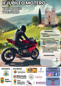 El Jubileo Motero es un evento único que reúne a moteros de toda la región en una jornada de ruta, compañerismo y solidaridad. Recorreremos un itinerario por la provincia con parada intermedia de carácter turístico/cultural en Esguevillas. Visita guiada a la Iglesia y Museo de la Moto. Se acuerda tapa con las consumiciones en los bares del pueblo. Punto de sellado de pasaporte motero.