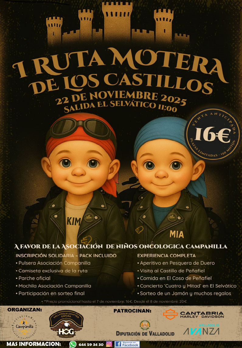 Ruta moto turística SOLIDARIA en favor de la Asociación de Niños Oncológicos de Valladolid CAMPANILLA
